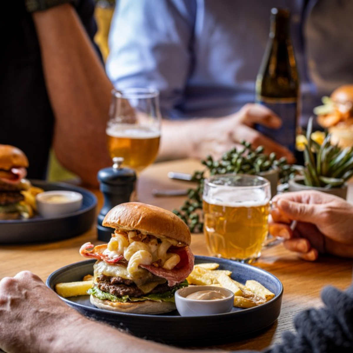 Dirty burger, double beef burger, streaky bacon, mac & cheese, crispy onions, beef dripping gravy | 15.50 1552 kcals