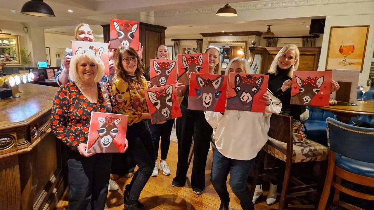 Oh What A Night! 👩🎨🥂🥰 The Galentines Gals were here in force with paint and prosecco in full flow! Dora the Donkey was recreated and didn’t look the same once…although one did look suspiciously like Larry the Llama ! 😳 Here’s some photos and memories Gals! 🥰 Alison and the Team The Blue Bell, Nr Yarm.