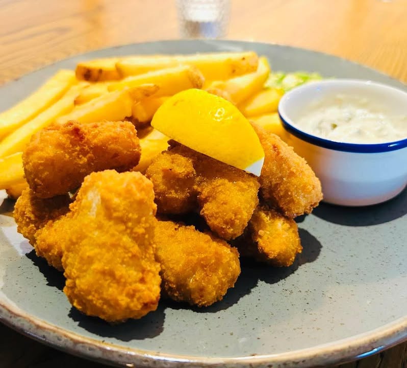 A proper Friday treat… 🥰🐟 Our Wholetail Scampi is a firm favourite — served with golden chips, mushy peas and tangy tartare sauce. Everything you need for a cracking fishy feast… and it’s available this evening ! Why not make it your Friday night plans and join us? 😋🍽️ #fridayatthebluebell #scampi #fridayfood #pubfavourites #tasty